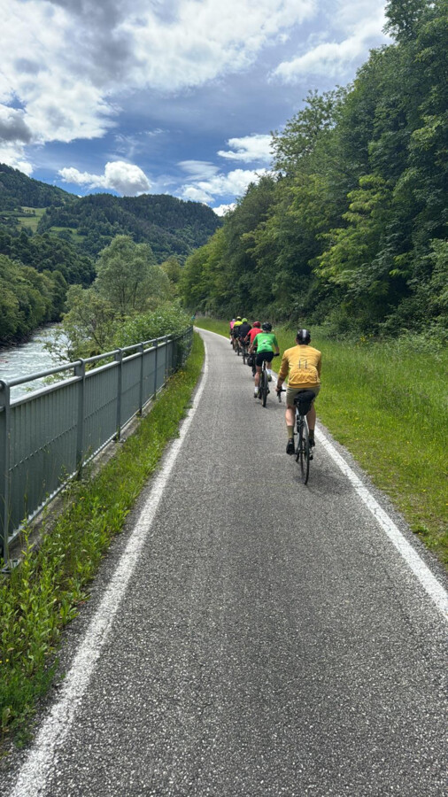 Zaczęliśmy klasycznie – od rozkręcenia nóg po podróży, lekkich przewyższeń i pierwszych zachwytów krajobrazem. A ten działa tu jak porządne espresso – od razu stawia na nogi. Każdego dnia kręciliśmy przez nowe doliny, odwiedzając Bolzano, Merano, Toblach oraz Trydent. Niedaleko Merano zatrzymaliśmy się w winnicy na degustację lokalnych win, a w Drei Zinnen zajrzeliśmy do serowarni, gdzie czekały na nas pyszne, dojrzewające sery. Czas płynął leniwie, a my delektowaliśmy się wszystkim, co włoskie: słońcem, jedzeniem, winem i tą niepowtarzalną atmosferą.