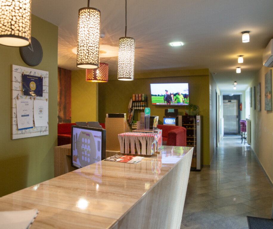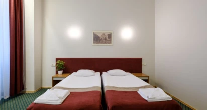 Pokoje: Przytulnie i nowocześnie urządzone pokoje posiadają prywatną łazienkę (WC, prysznic lub wanna, suszarka do włosów), telewizor LCD, część z nich posiada balkon.