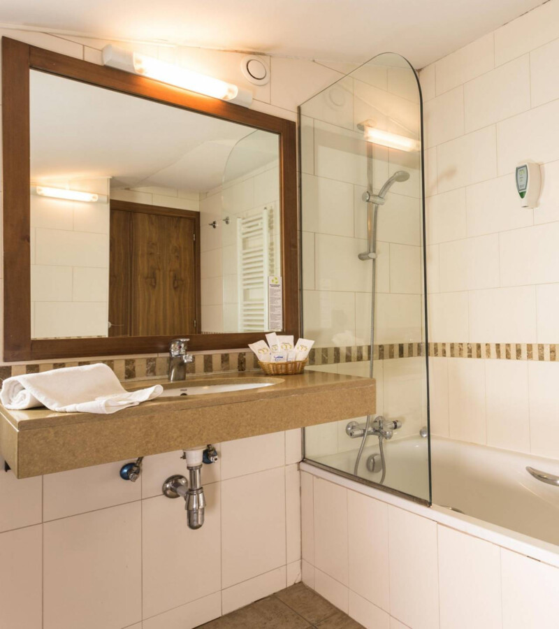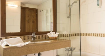 Pokoje: Obiekt oddaje do dyspozycji gości komfortowo urządzone pokoje. Każdy z nich wyposażony jest w TV-SAT, telefon, sejf, minibar oraz łazienkę z suszarką do włosów.