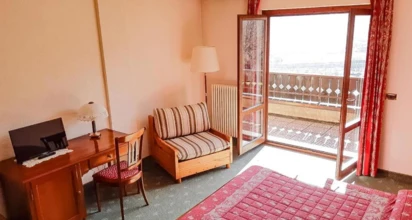 Pokoje: Hotel oddaje do dyspozycji gości w pełni wyposażone i urządzone pokoje, większość posiada balkon z widokiem na Aostę. Każdy z nich posiada prywatną łazienkę z prysznicem/wanną, suszarką do włosów, biurko, telefon, TV oraz dostęp do Internetu.