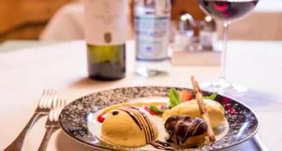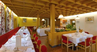 Wyżywienie: W hotelowej restauracji podawane są przysmaki kuchni międzynarodowej, włoskiej i tyrolskiej. Codziennie rano przygotowywany jest bufet śniadaniowy. Wieczorami na gości czeka obiadokolacja, składająca się z przystawki, dania głównego oraz deseru.