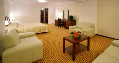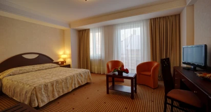 Pokoje: Przestronne pokoje urządzono gustownie i funkcjonalnie. Standardem jest łazienka wyposażona w wannę lub prysznic, suszarkę do włosów i WC. Ponadto w pokojach znajduje się mini bar, TV-Sat, telefon oraz biurko, dodatkowo klimatyzacja i dostęp do Internetu.