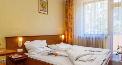 Pokoje: Funkcjonalnie urządzone pokoje hotelowe w większości posiadają balkon. We wszystkich dostępne są łazienki, telefon, TV oraz radio.