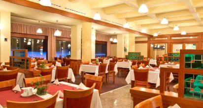 Wyżywienie: Restauracja w hotelu serwuje śniadania z ciepłym i zimnym bufetem, natomiast obiadokolacje obejmują dania do wyboru, w tym posiłek wegetariański. W ciągu dnia hotel zaprasza do baru kawowego, gdzie serwowane są również różne przekąski.