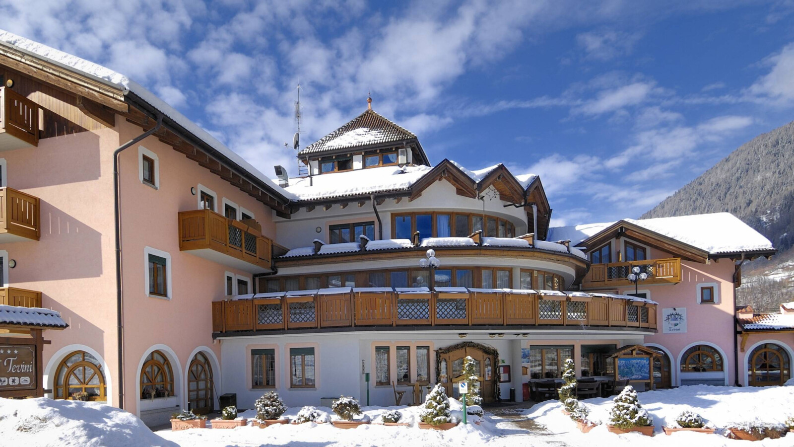 Wyżywienie: W eleganckiej hotelowej restauracji serwowane są dania z regionu Trentino, jak również potrawy kuchni międzynarodowej. Śniadania podawane są w formie szwedzkiego bufetu. Obiadokolacja obejmuje bufet z sałatkami, pierwsze i drugie danie oraz deser. Raz w tygodniu organizowana jest kolacja z lokalnymi specjalnościami.