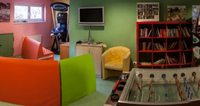 Atrakcje po nartach: W hotelowej strefie wellness znajduje się sauna, łaźnia parowa oraz pokój relaksacyjny. Zimowe wieczory warto spędzić w przyjemnym barze, któremu wyjątkowy klimat nadaje otwarte palenisko. Bardziej kameralna atmosfera panuje w pokoju do gry w karty z osobnym barem. Z kolei na najmłodszych czekają specjalne pomieszczenia do gier i zabaw.