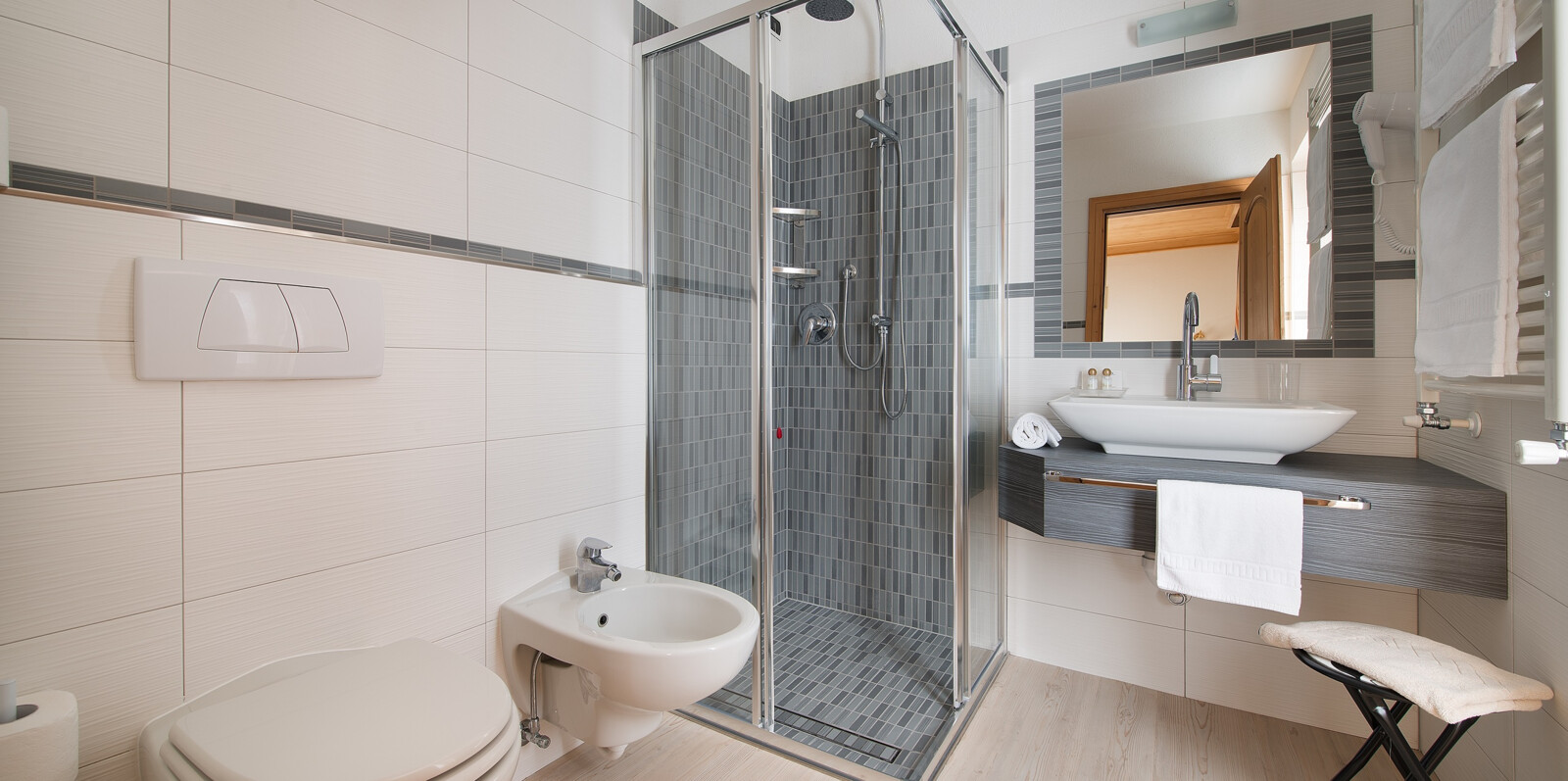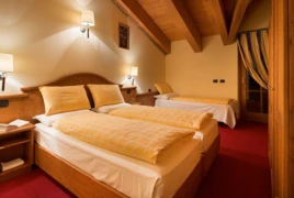 Pokoje: Hotel oddaje do dyspozycji gości wygodne pokoje urządzone w klasycznym, alpejskim stylu, w większości z balkonem. W każdym pokoju znajduje się łazienka i suszarką do włosów, a także TV-SAT.