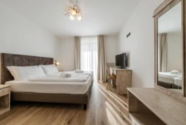 Pokoje: Pokoje w hotelu są przestronne i przytulnie urządzone w tradycyjnym alpejskim stylu, łącząc naturalne materiały z ciepłą kolorystyką, co tworzy idealne warunki do relaksu po dniu spędzonym na stoku. Każdy pokój wyposażony jest w łazienkę z prysznicem, suszarkę do włosów, zestaw kosmetyków, telewizor z płaskim ekranem, telefon oraz sejf. Część pokoi posiada balkon.