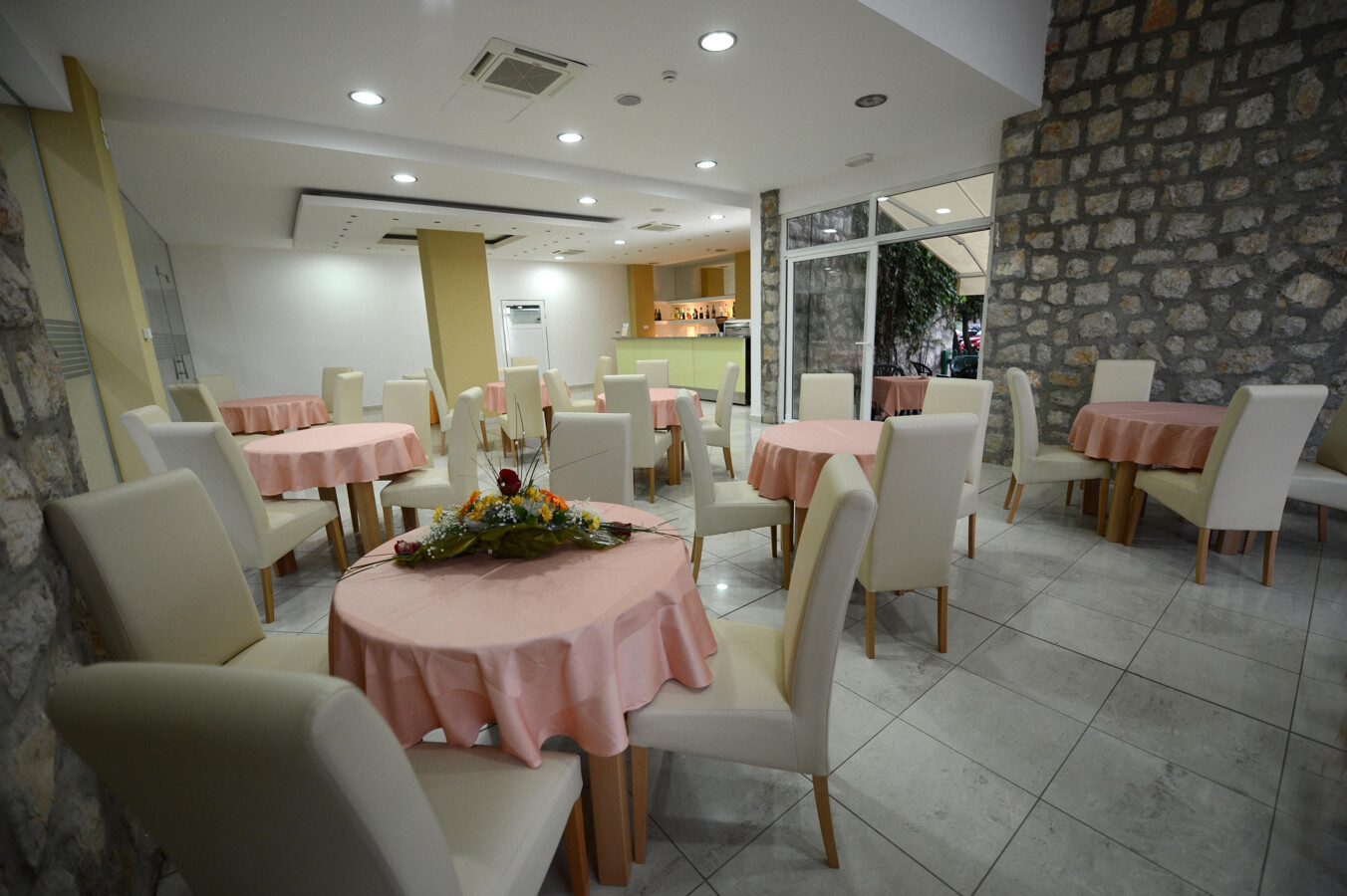 Wyżywienie: Przestronna hotelowa restauracja wraz z tarasem to idealne miejsce do spożywania posiłków. Oferowane są w niej głównie specjały kuchni dalmatyńskiej, nie brakuje też znanych dań kuchni europejskiej. Zarówno śniadania jak i obiadokolacje podawane są w formie bufetu.