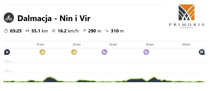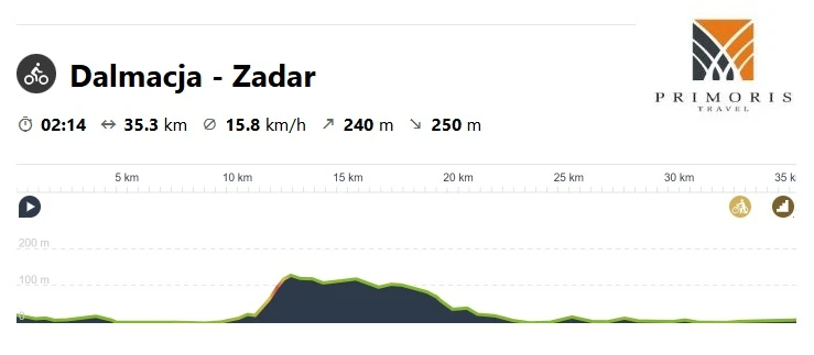 Kolejny dzień nad chorwackim wybrzeżem spędzimy na wyprawie do pobliskiej wyspy Pašman, Rano udamy się do centrum miasta Biograd na Moru skąd wyruszymy promem wraz z rowerami do miasteczka Tkon, położonego na wyspie. Dzisiejsza trasa będzie prowadziła wzdłuż głównie wzdłuż wybrzeża. Z racji tego, że na wyspę można przedostać się jedynie promem, ruch samochodowy jest znikomy, co sprzyja relaksacyjnej jeździe.