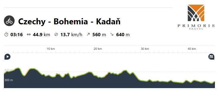 Dzisiaj po śniadaniu udam się z hotelu na północ w kierunku miasteczka Kadań. Nasza trasa będzie wiodła praktycznie cały czas trasą rowerową wzdłuż rzeki Ohrza. Będziemy poruszali się zarówno po trasach szutrowych jak i bocznych drogach asfaltowych. Po drodze będziemy mijali małe i spokojne, czeskie miasteczka, gdzie będziemy zatrzymywać się na krótki odpoczynek.