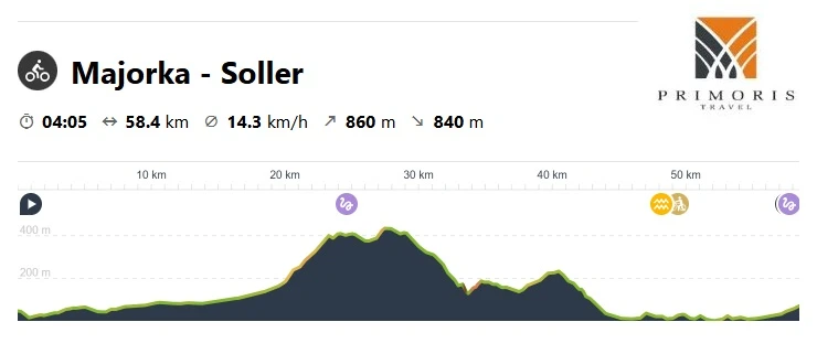Kolejny dzień naszej rowerowej podróży po Majorce to wyprawa na zachodnie wybrzeże wyspy do nadmorskiej miejscowości Port de Soller leżącej u podnóża Parku Serra de Tramuntana. Po drodze odwiedzimy miejscowość Valldemossa, gdzie wypoczywał sam Fryderyk Chopin. Do hotelu wrócimy korzystając ze słynnej zabytkowej kolejki - Ferrocarril de Sóller.