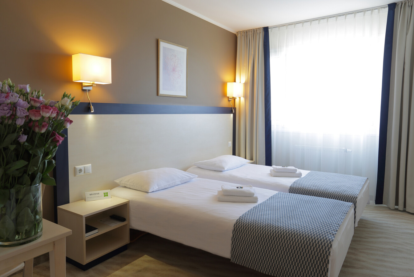 Pokoje: Pokoje urządzone są elegancko i nowocześnie. Każdy z nich posiada prywatną łazienkę, płastki TV oraz telefon. Z okien roztacza się panorama Kłajpedy i Zalewu Kurońskiego.