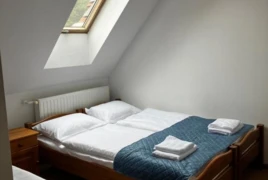 Pokoje: Pokoje w obiekcie posiadają prywatną łazienkę (prysznic, WC, umywalka, lustro) oraz wyposażone są w łóżka, szafę, stolik nocny, stolik, krzesła oraz TV.