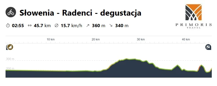 Dzisiaj udamy się w okolice miasta Radenci. Nasza trasa będzie wiodła przez zielone tereny wschodniej Słowenii. Trasa mimo kilku podjazdów nie będzie zbyt wymagająca. Malownicze krajobrazy i liczne winnice będą nam towarzyszyły przez całą drogę. Zwieńczeniem dnia będzie wizyta w jednej z lokalnych winnicy, gdzie spróbujemy doskonałego, słoweńskiego wina.