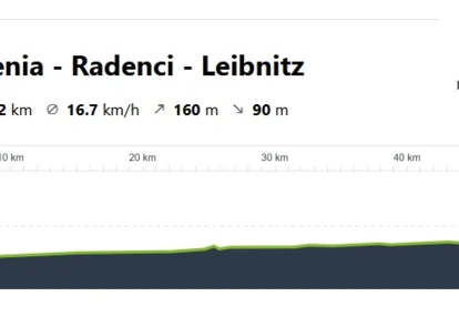 Naszą podróż po wschodniej Słowenii zakończymy na kolejnej podróży wzdłuż rzeki Mura. Tym razem jednak, udamy się na północny zachód, aby odwiedzić leżące nad rzeką, austriackie miasto Leibnitz. Trasa prowadzi po spokojnych terenach, bez znaczących podjazdów więc będzie to doskonałe zwieńczenie tygodniowego pobytu na Słowenii.