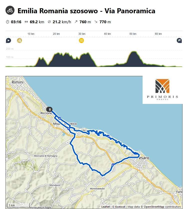W dzień regeneracyjny udamy się przepiękną, widokową trasą, Via Panoramica, do jednego z największych miast tej części regionu, Pesaro. Dzień upłynie nam pod znakiem zapierających dech w piersiach widoków roztaczających się z tej, ukochanej przez kolarzy, drogi.