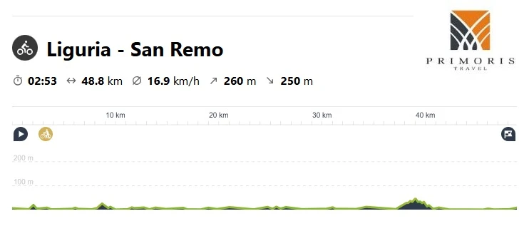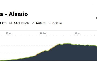 Tym razem czeka nas bardziej wymagający dzień. Początkowy etap to po raz kolejny spokojna jazda wzdłuż Wybrzeża Liguryjskiego, ale już po kilku kilometrach odbijemy w głąd lądu i udamy się na okoliczne wzgórza. Czeka nas dość długi i nieco wymagający podjazd, a następnie zjazd w kierunku wybrzeża do miasteczka Alassio, gdzie jeśli czas pozwoli odpoczniemy na plaży.