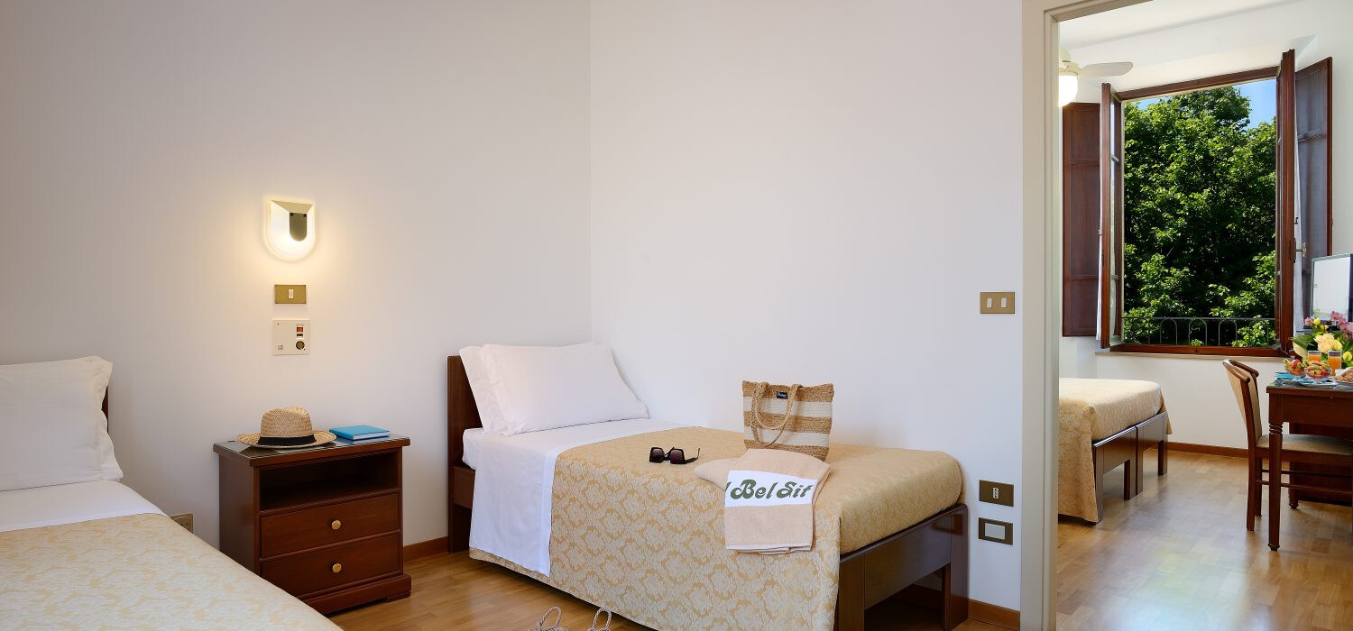 Pokoje w hotelu Bel Sit są jasne, komfortowo urządzone i utrzymane w klasycznym stylu, z dużą dbałością o detale. Wyposażone są w klimatyzację, telewizor, minibar oraz bezpłatne Wi-Fi. Wiele z nich posiada balkon lub taras, z którego roztacza się przepiękny widok na morze lub zielone wzgórza Marche, tworząc idealne warunki do wypoczynku.