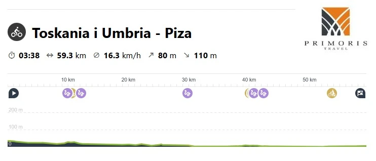 Zapraszamy na wycieczkę do sąsiadującej z Toskanią Umbrii. Region ten określany jest „zielonym sercem Włoch”, a dominują tu zalesione doliny i pełne uroku średniowieczne miasteczka. Głównym punktem programu będzie wizyta w położonej przy granicy Toskanii i Umbrii Cortonie. Następnie nasza trasa rowerowa poprowadzi nas przez urokliwe okolice jeziora Trazymeńskiego.