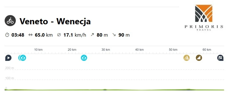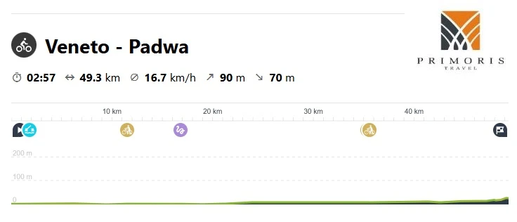 Dzisiaj udamy się w podróż nad Lagunę Wenecką. Trasa mimo nieco większego dystansu nie jest wymagająca i sprzyja relaksowi. Poruszać się będziemy głównie ścieżkami rowerowymi biegnącymi po praktycznie całkowicie płaskim terenie. Celem naszej podróży będzie zabytkowe miasto Świętego Antoniego – Padwa.