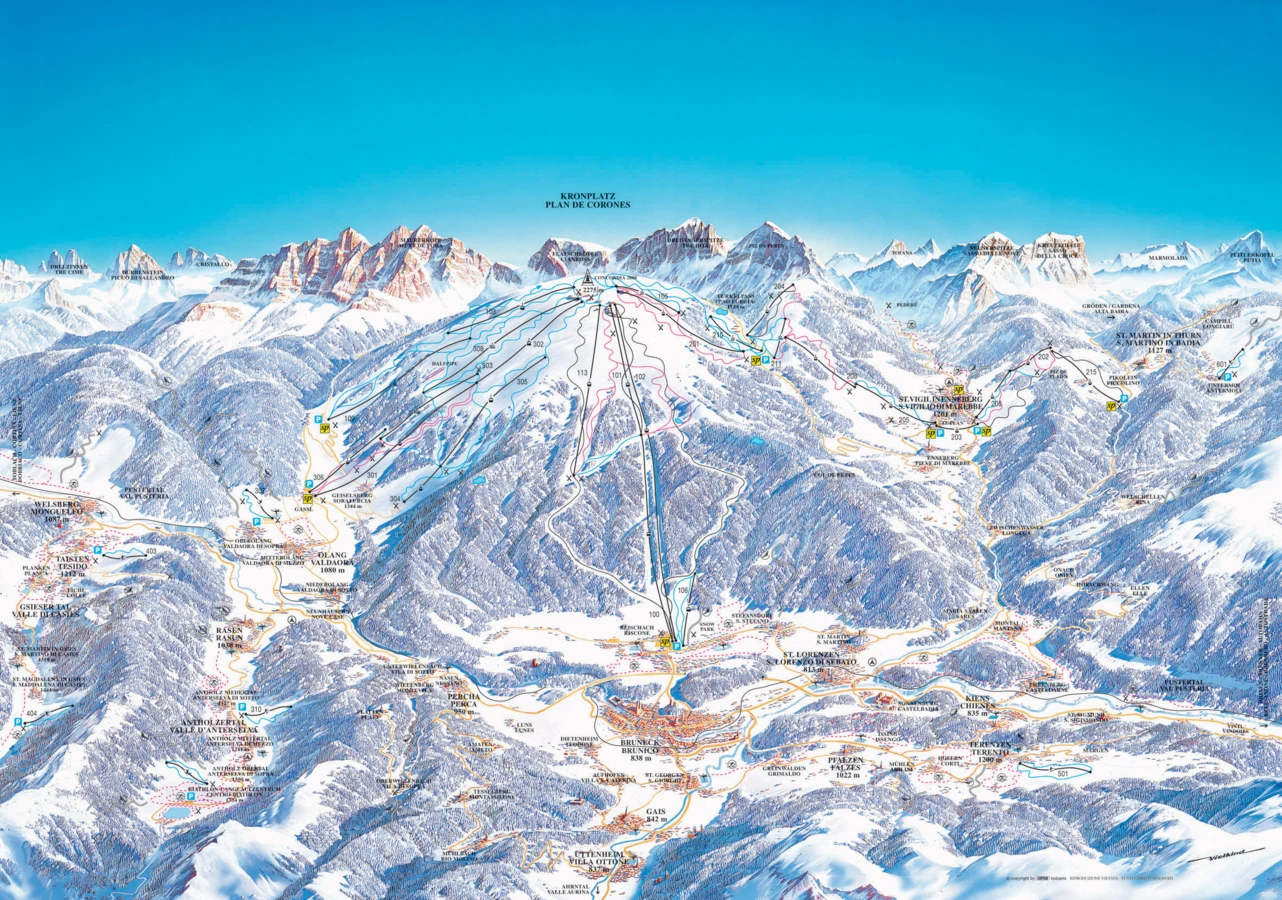 Najlepszym miejscem startowym, by rozpocząć narciarską przygodę w tym zachwycającym regionie, będzie położona w pobliżu Valdaora, miejscowość Gassl. Na szczyt Kronplatz można dostać się kolejno dwoma wyciągami, które łącznie pokonują dystans ponad 4 km. Będąc na szczycie warto poświęcić chwilę, by rozkoszować się niezwykłą 360-stopniową panoramą, rozciągającą się wokół tego rozległego płaskowyżu.
