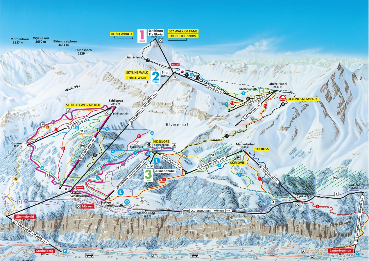 Tereny narciarskie u podnóża góry Schilthorn to najwyżej położony ośrodek narciarski w Berneńskim Oberlandzie, który oferuje świetne warunki aż do wiosny. Dla narciarzy i snowboardzistów przygotowano tu ponad 50 km doskonałych tras zjazdowych. Na szczególną uwagę zasługuje trasa słynnych amatorskich zawodów Interno, która prowadzi z Schilthorn do Lauterbrunnen. Rekordziści pokonują ten niemal 16-kilometrowy zjazd w czasie poniżej 15 minut.