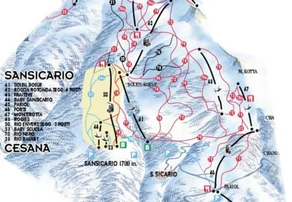 Centralne położenie ośrodka umożliwia swobodne korzystanie z potencjału regionu Vialattea. Z Cesany można udać się w kierunki Sansicario i dalej aż do najwyższego szczytu regionu, Fraiteve. Stąd można udać się również w kierunku ośrodków narciarskich Sestriere i Sauze d'Oulx lub zjechać olimpijską trasą z powrotem do Sansicario. Dzięki swojemu specyficznemu położeniu, ośrodek Cesana - Sansicario daje możliwość szusowania po południowych stokach pokrytych sosnowymi lasami.