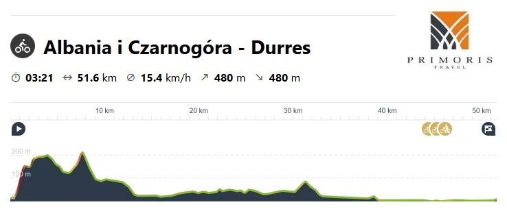 Rano wyruszymy busem w kierunku znanego nam już miasteczka Lezha, z którego chętni mogą rozpocząć swoją rowerową podróż. Naszym głównym punktem startowym będą okolice miasta Fushë-Kruja, skąd udamy się na południe w kierunku wybrzeża Adriatyku. Na początku trasy czeka nas stromy, ale niezbyt długi podjazd. Po jego pokonaniu rozpoczniemy jazdę po płaskowyżu z pięknym widokiem na wybrzeże Albanii. Pozostała część trasy będzie prowadziła głównie po asfalcie, po płaskim terenie z nielicznymi podjazdami. Praktycznie brak ruchu samochodowego sprzyjał będzie podziwianiu albańskiej przyrody. Dopiero pod koniec trasy, przy wjeździe do miasta Durrës, ruch się znacząco zwiększy.