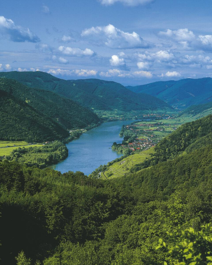 Po opuszczeniu Melk wjeżdżamy do jednej z najpiękniejszych dolin w Austrii - Doliny Wachau. Ciągnący się od Melk aż do Krems odcinek, jest jednym z najbardziej atrakcyjnych na całej trasie wzdłuż Dunaju. Górzysty krajobraz z licznym zamkami i historycznymi budowlami oraz położone na zboczach winnice to najbardziej charakterystyczne cechy tej okolicy. Specyficzny klimat panujący w dolinie sprzyja produkcji wyśmienitego wina, z którego znana jest cała dolina. Symbolem doliny Wachau jest posąg Wenus z Willendorfu, który pochodzi sprzed 26 000 lat. Odnaleziona początkiem XX wieku figurka znajduje się obecnie w jednym z wiedeńskich muzeów.