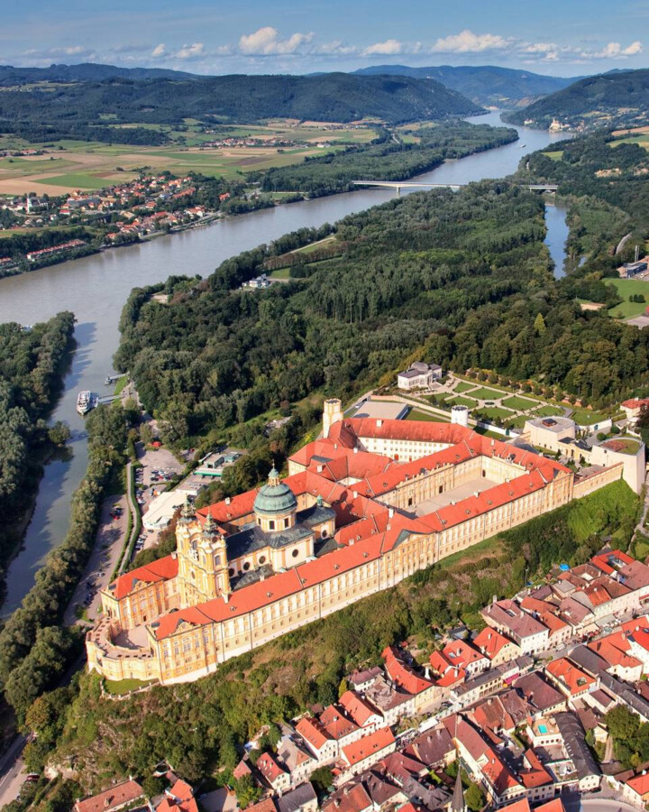 Po pierwszym dłuższym odcinku, liczącym około 45 kilometrów, na naszej trasie napotkamy miejscowość Melk. Znajdujące się na południowym brzegu Dunaju miasto jest doskonałym miejscem na chwilę odpoczynku i relaksu. Będąc w Melk należy przede wszystkim odwiedzić górujący nad miastem zakon Benedyktynów. To wspaniałe opactwo czuwa nad okolicą nieprzerwanie od XI wieku. W klasztorze znajduje się muzeum oraz biblioteka, w której znajduje się blisko 100 tysięcy ksiąg, w tym około 1200 rękopisów pochodzących jeszcze z czasów średniowiecza.
