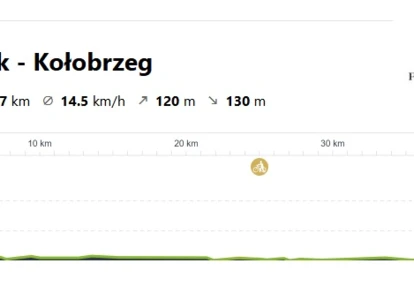 Dzisiejszy, niezbyt długi odcinek prowadzi po praktycznie całkowicie płaskim terenie. Trasa wytyczona została w większości wzdłuż polskiego wybrzeża, przez co na pewno nie zabraknie przerw na piaszczystych, nadbałtyckich plażach. Nim dotrzemy do Kołobrzegu odwiedzimy również mniejsze nadmorskie kurorty jak Mrzeżyno czy Dźwirzyno, które co roku odwiedza rzesza turystów, głównie rodzin z dziećmi.