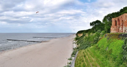 Naszym dzisiejszym celem będzie miasteczko Rewal. Tutaj odpoczniemy, aby nabrać sił na kolejne dni. Kurort przyciąga turystów doskonałymi plażami oraz kąpieliskiem, które uważane jest za jedno z najpiękniejszych nad Morzem Bałtyckim. Prócz plażowania na turystów czekają tu również inne atrakcje jak chociażby ruiny kościoła w Trzęsaczu, które są jedną z najbardziej malowniczych atrakcji wybrzeża. Procesy abrazyjne sprawiły, że brzeg morski nieustannie zbliżał się do budowli. W 1901 roku zawaliła się pierwsza część kościoła. Dzisiaj pozostał jedynie fragment ściany południowej. Jest to jedyna tego typu atrakcja turystyczna w Europie.