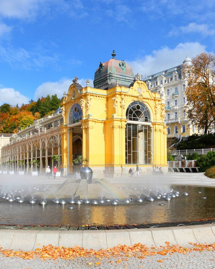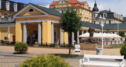 Ostatni punkt naszej dzisiejszej wyprawy to Mariańskie Łaźnie. Ten lubiany, elegancki kurort zachwyca swoją architekturą, zadbanymi parkami oraz urokliwą atmosferą. Zachęcamy do skosztowania tutejszej leczniczej wody wprost ze Studni Krzyża. Warto także zobaczyć słynną Śpiewającą Fontannę, która w nieparzyste godziny zachwyca zebranych widzów przepięknymi koncertami.