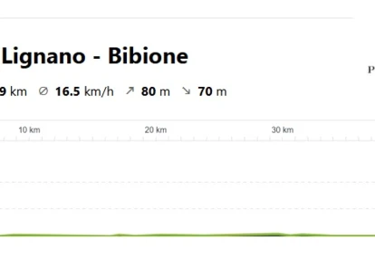 Początek naszej trasy to będzie droga rowerowa wzdłuż miasteczka Lignano Sabbiadoro, przy Lagunie di Marano. Trasa nie sprawi nam dzisiaj żadnych trudności, będziemy się poruszali całkowicie po płaskim terenie, głównie po ścieżkach rowerowych, zarówno asfaltowych jak i szutrowych. Po chwili odbijemy od brzegu i pojedziemy na północ, aby wjechać do regionu Veneto.