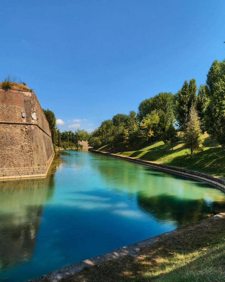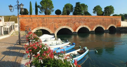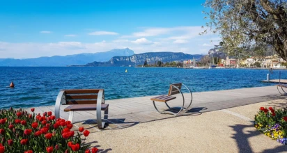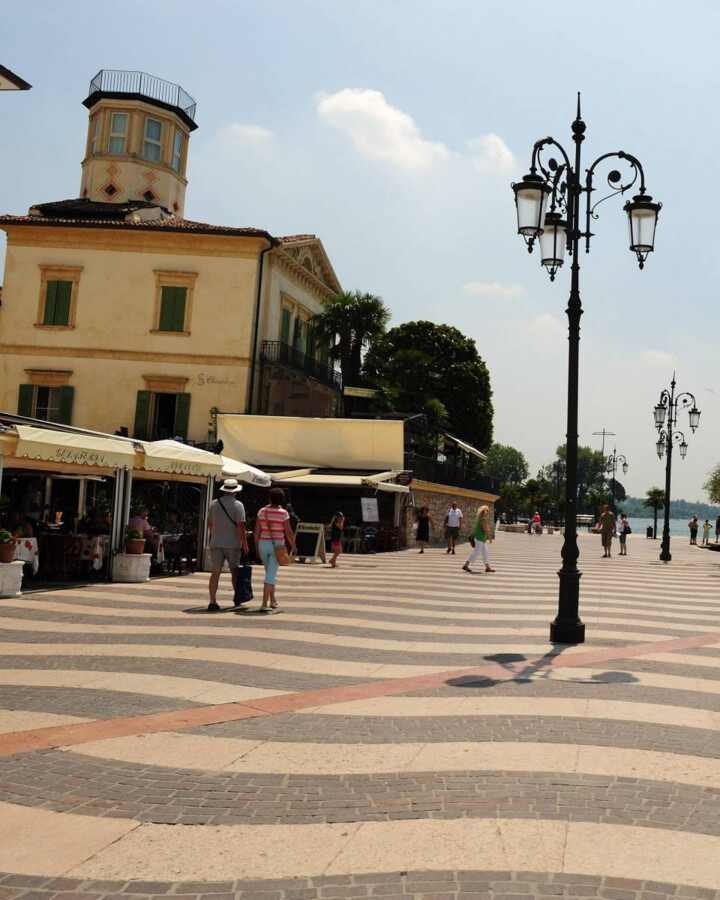 Kolejnych kilka kilometrów poruszamy się wzdłuż wybrzeża, mając jezioro po prawej stronie. Dojeżdżamy do urokliwego miasteczka Lazise, widocznego z daleka dzięki murom obronnym z wieżyczkami. Kontynuujemy jazdę w kierunku południowym, a następny odcinek trasy to na zmianę asfalt i ścieżka rowerowa. Mijając po drodze miejscowość Ronchi oraz park rozrywki Gardaland docieramy do słynnego kurortu Peschiera del Garda. Zatrzymamy się tu na krótki spacer po malowniczej starówce, otoczonej murami obronnymi.