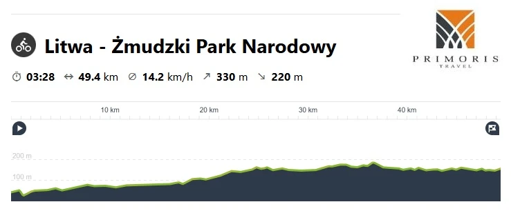 Początkowo będziemy poruszali się asfaltowo/szutrowymi drogami po terenie Parku Regionalnego Salantai, więc na pewno nie zabraknie leśny, zacienionych dróg. Będziemy przejeżdżali przez małe, litewskie wioski, gdzie będziemy się zatrzymywać na krótkie przerwy. Niestety na trasie rzadko można będzie spotkać bar lub restaurację, więc będziemy się zatrzymywać przy lokalnych sklepach. Po około 20 kilometrach dojedziemy do miasteczka Płótele, położonego na terenie Żmudzkiego Parku Narodowego.