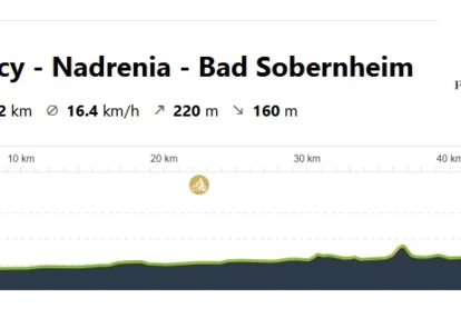 Dzisiaj będziemy kontynuowali podróż wzdłuż niemieckich rzek, tym razem nie będzie to jednak Ren czy Men, a niewielka rzeka Nahe. Znów będziemy poruszali się wzdłuż brzegu rzeki, głównie drogami asfaltowymi, ale nie zabraknie również krótkich szutrowych odcinków. Do pokonania będziemy mieli niecałe 50 kilometrów, a na trasie czekają na nas jedynie niewielkie podjazdy, więc będziemy mogli w pełni podziwiać zielone tereny regionu.