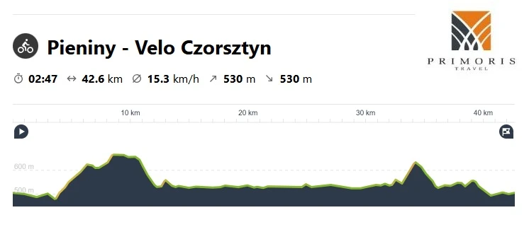 Naszą podróż po Pieninach rozpoczniemy od bodajże najsłynniejszej trasy rowerowej w regionie, czyli Velo Czorsztyn. Cała trasa liczy ok. 30 kilometrów i przebiega przez urokliwe i malownicze tereny wzdłuż linii brzegowej Jeziora Czorsztyńskiego. Przejazd zakłada skorzystanie z promu i przepłynięciu na drugi brzeg jeziora, jednakże my skorzystamy z pełnej pętli i objedziemy całe jezioro.