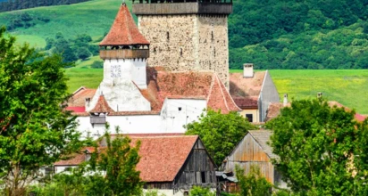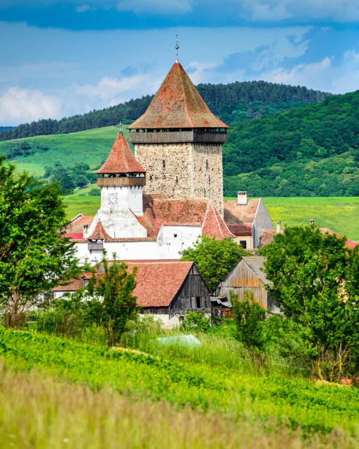 Tego dnia, to niewielkie miasteczko będzie najważniejszym punktem na naszej rowerowej mapie. Miejscowość ta słynie z położonej na pobliskim wzgórzu potężnej twierdzy, która majestatycznie panuje nad okolicą. Jest to średniowieczny zamek chłopski, który w czasach swojej świetności pełnił rolę schronienia dla okolicznej ludności. Początki fortecy sięgają VII wieku, jednak swoją obecną formę uzyskała podczas przebudowy w XII wieku. Jest to jedno z najpopularniejszych i najchętniej odwiedzanych miejsc w Rumunii. Imponująca panorama roztaczająca się z zamku oraz odrestaurowane ruiny robią na turystach ogromne wrażenie i z pewnością zachwycą nie tylko pasjonatów historii.