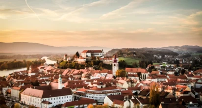 Po blisko 40 kilometrach dotrzemy do naszego głównego celu jakim jest miasto Ptuj. Jest to najstarsze miasto Słowenii, położone u stóp wzgórza zamkowego. Ptuj w pełni oddaje klimat średniowiecznego miasta, a spacerując po jego uliczkach można również poczuć historię czasów starożytnych. Nad miastem wznosi się jeden z najpiękniejszych zamków w Słowenii, z którego rozpościera się widok na całe średniowieczne miasto. Ptuj może poszczycić się również najstarszą piwniczką winiarską w Słowenii i najstarszymi słoweńskimi winami. Winiarskie tradycje sięgają jeszcze czasów rzymskich, kiedy to ówcześni mieszkańcy miasta wzbogaciła się na handlu właśnie winem.