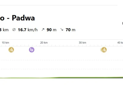 Rano po śniadaniu udamy się busem w okolice znanego nam już miasta Mestre. Tutaj rozpoczniemy naszą dzisiejszą podróż. Będziemy poruszali się po ścieżkach rowerowych oraz drogach o znikomym ruchu samochodowym. Dzisiejszy odcinek liczy blisko 60 kilometrów, ale prowadzi po płaskim terenie. Przez większość część dnia będziemy trzymali się ścieżki rowerowej prowadzącej z nad Jeziora Garda do Wenecji.