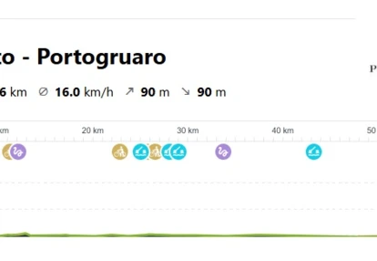 Dziś ponownie wystartujemy na rowerach z hotelu. Tym razem jednak, udamy się w kierunku miasta Caorle. Nasza trasa będzie wiodła ścieżką rowerową, również wzdłuż wybrzeża Adriatyku. Znikomy ruch i płaski teren, będą pozwalały na podziwianie okolicznej przyrody i nadmorskich miasteczek. W pierwszym etapie podróży nie zabraknie również czasu na wypoczynek na jednej z piaszczystych plaż oraz na kąpiel w Adriatyku.