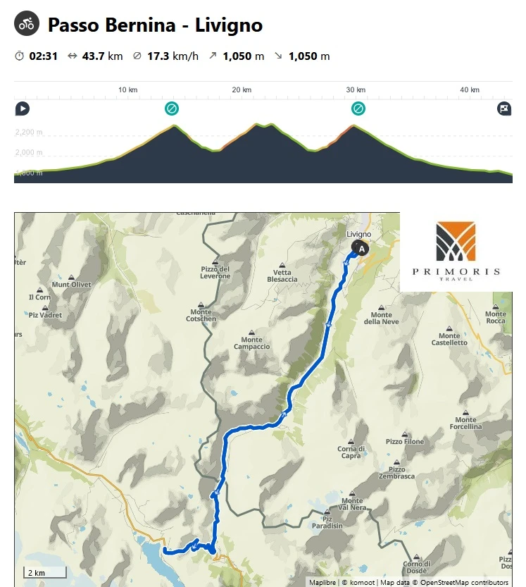 Po wyjątkowo ciężkim dniu regeneracyjnie wjedziemy na przełęcz Bernina w Szwajcarii. Po drodze konieczne będzie zaliczenie Passo Forcola oraz Bernina Pass.