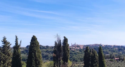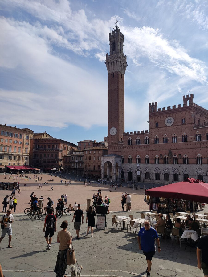 Dzisiejszego dnia po śniadaniu opuszczamy południową Toskanię i wyruszamy na północ. Z hotelu jedziemy busem w okolice Poggibonsi z górującą nad miasteczkiem fortecą Poggio Imperiale otoczoną pierścieniem murów, z których podziwiać można panoramę toskańskich wzgórz. Z punktu startowego do Sieny mamy tylko 35km, ale droga cały czas delikatnie pnie się do góry (na pierwszych 20km trasy wyjeżdżamy ze 100 na 300 m n.p.m.). Siena, która do dnia dzisiejszego zachowała swój średniowieczny charakter, położona jest na wzgórzach Chianti, w otoczeniu winnic i starych gajów oliwnych, a centrum to kolaż krętych uliczek, magicznych zaułków, wspaniałej architektury i sztuki.