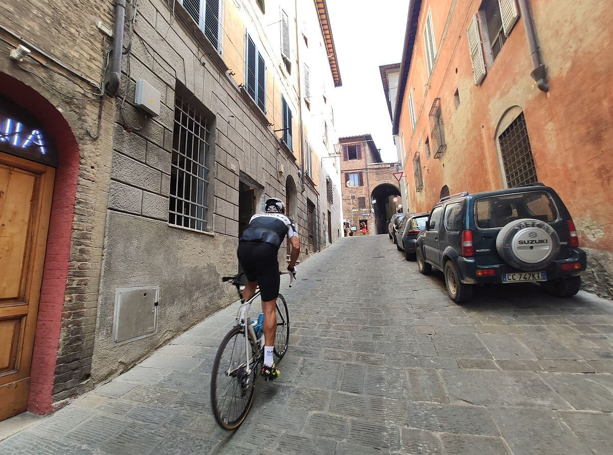 Siena to także kolarskie miasto, gdyż kończy się tam wyścig Strade Bianche rozgrywany w czasie wiosennych klasyków. Wyścig, który dwukrotnie wygrał Michał Kwiatkowski, ma swoją metę na Piazza del Campo. Jednak zanim dostaniemy się na główny plac Sieny trzeba pokonać ulicę Santa Caterina, która ma tylko 250 metrów długości, ale za to średnie nachylenie 15%!